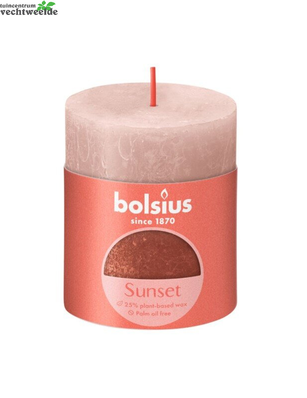 Rustiek fading sunset stompkaars 80/68 Misty pink + Amber