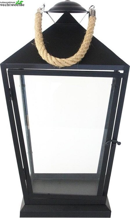 Schrijf zelf een recensie over "Lantaarn zwart met touw l25b25h46"