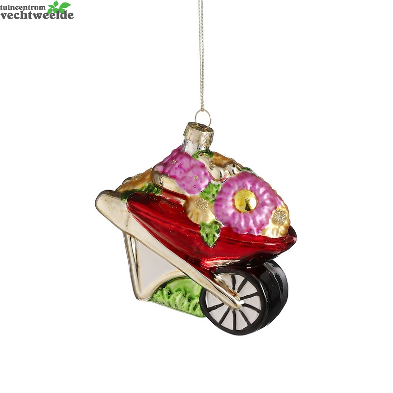 Orn.glas kruiwagen l10.5b6h9.5cm rd