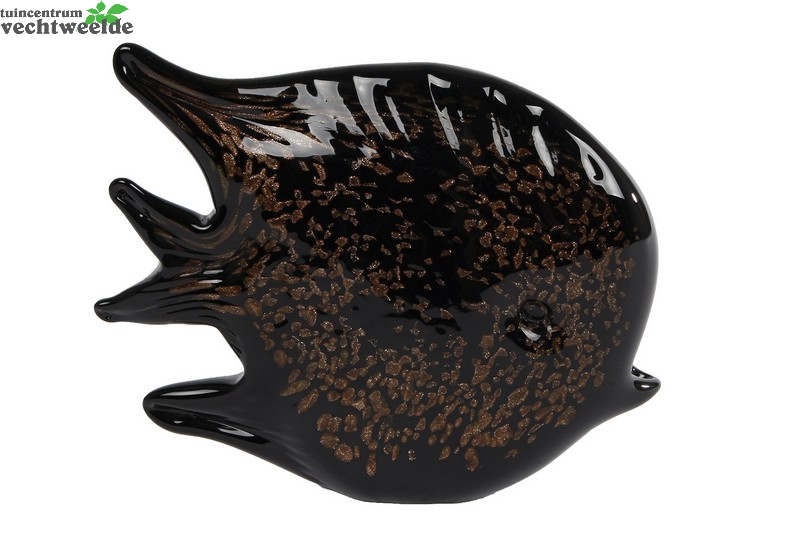 Sculptuur zwrt/brn glas l16b4h13cm
