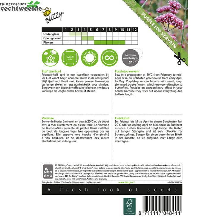 Wilt u Verbena stijf ijzerhard 1g kopen? Kom langs in ons sfeervolle tuincentrum en laat u inspireren. We helpen u graag en geven vakkundig advies om uw huis & tuin mooi te maken!