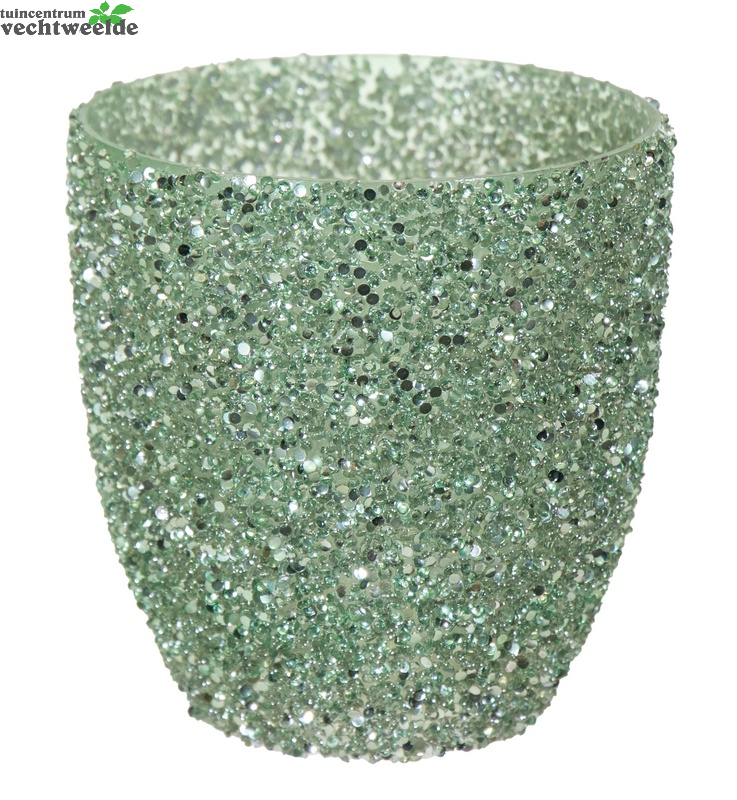 Pot strass egg d12.5h12 groen