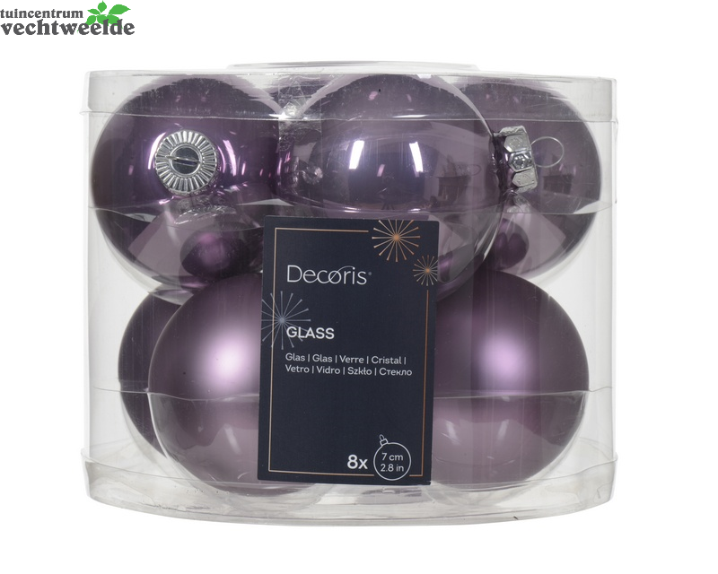 Kerstbalmix glas d7cm 8st klila