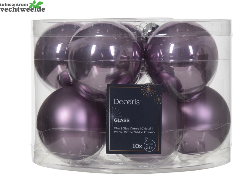 Kerstbalmix glas d6cm 10st klila