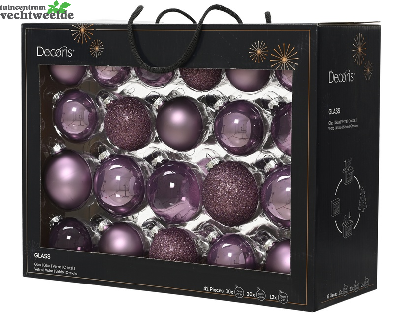 Kerstbalmix glas d7cm 42st k.lila