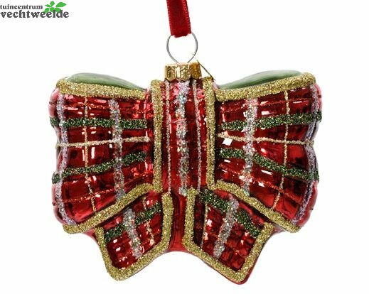 Orn.glas strik b8.8h8cm ossenbloed