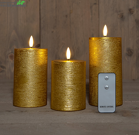 Kaars rustiek+3d vlam ab bo s3 goud