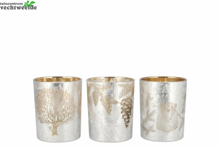 Schrijf zelf een recensie over "RUBY WHITE/GOLD T-LIGHT FORREST ASS 9X10CM"