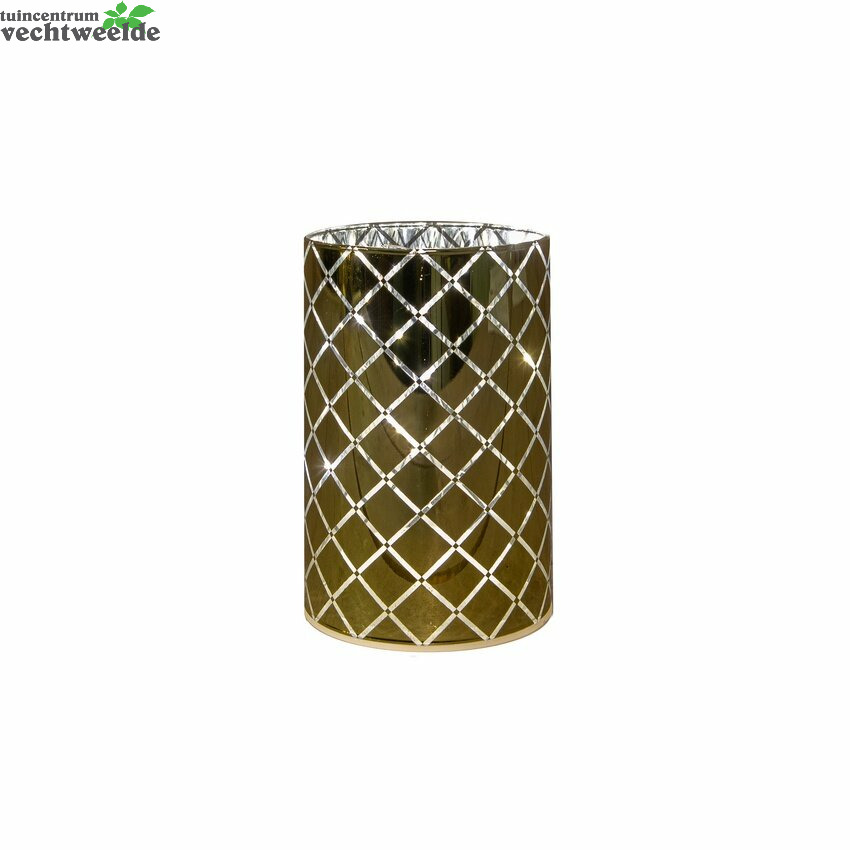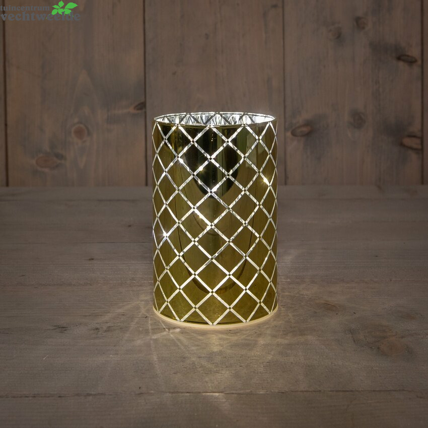 Cylinder glas 8 led d10h15cm goud
