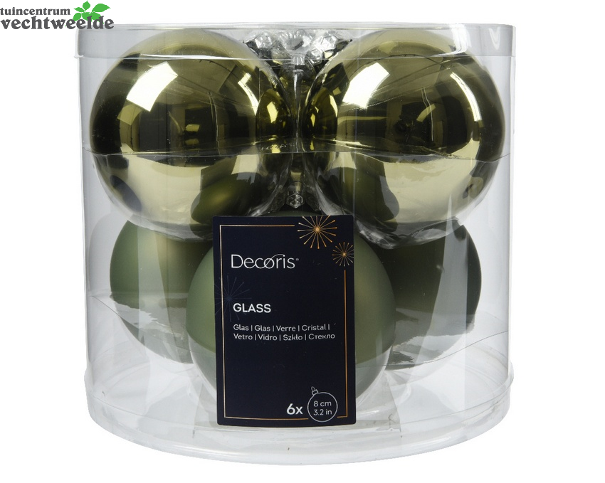 Kerstbal glas d8cm rosemarijn 6st