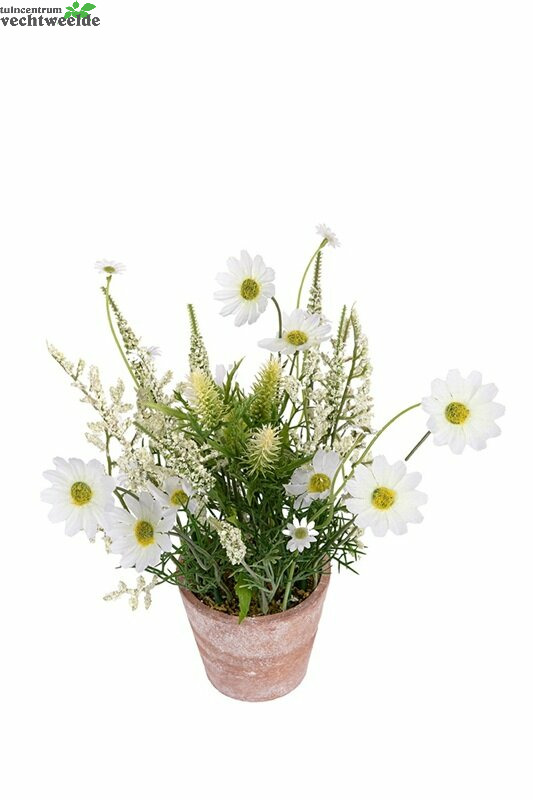 Bloemstuk margrietje h22cm wit