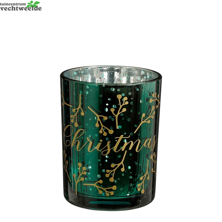 Theelichthoudr kerst h12.5d10cm grn
