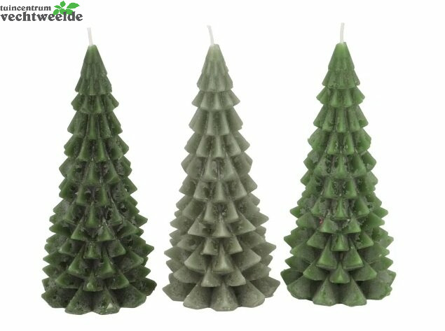FROSTY GREEN MIX X-MAS TREE CANDLE 6X12CM per stuk