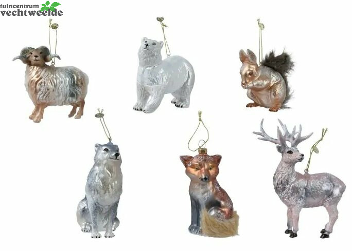 Orn.glas dier l6.5b12.8h13cm per stuk