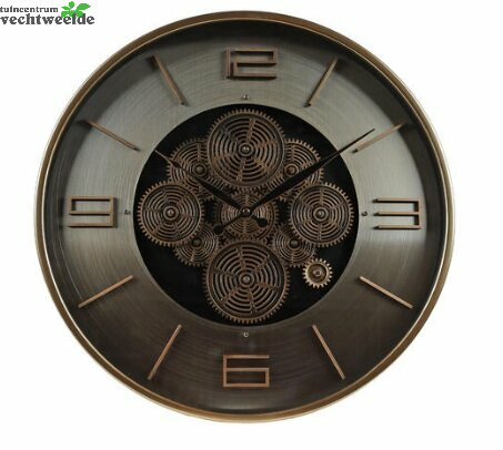 Wandklok metaal 46x46x8cm goud