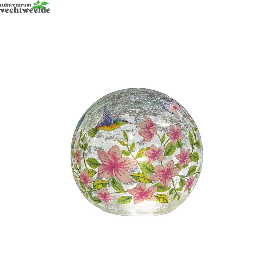 Bal glas led bloemprint d15cm