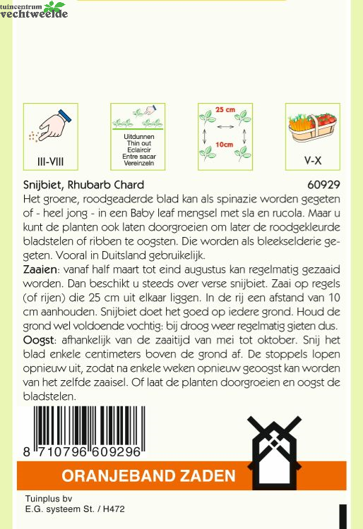 worden. Dan beschikt u steeds over verse snijbiet. Zaai op regels