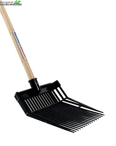 De paardenstalvork is geschikt voor het schoonmaken van paardenstallen. De tanden van de paardenstalvork staan dicht bij elkaar zodat niets tussen de tanden kan wegglippen. De vork is voorzien van een 140cm steel met een handgreep. Bij het gebruik van deze vork buigt u uw knie?n, niet uw rug! Daarna duwt u de vork in de berg afval/mest en neemt zoveel op als mogelijk is zodat u het dan op de door u gekozen plek kunt deponeren. Bij zwaarder materiaal raden we u aan niet teveel materiaal op de vork te nemen, dit is een behoud voor uw vork, schouders, rug en knie?n.