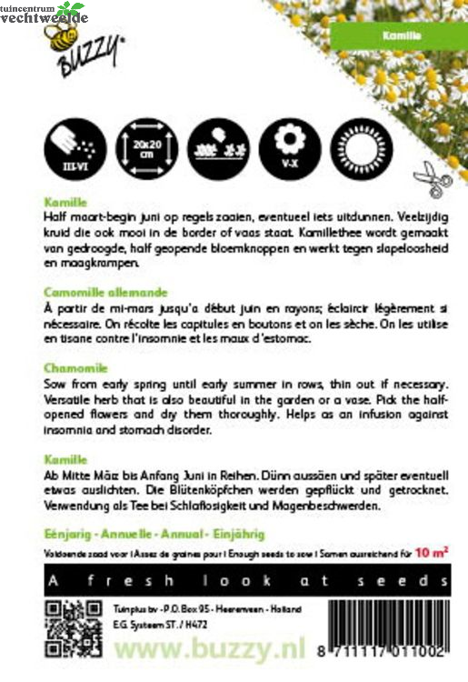 Wilt u Kamille 0.25g kopen? Kom langs in ons sfeervolle tuincentrum en laat u inspireren. We helpen u graag en geven vakkundig advies om uw huis & tuin mooi te maken!