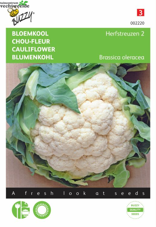 Bloemkool - Herfstreuzen 2 Half april-half juni in de vollegrond zaaien op een zaaibed. Uitdunnen en na 5/6 weken uitplanten. Tegen de koolvlieg is een milieuvriendelijke ‘koolkraag’ aan te raden.