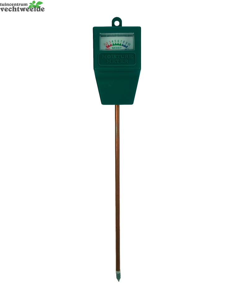 Deze vochtigheidsmeter is geschikt voor het meten van de vochtigheid in een pot of in de volle grond. Steek de meetstaaf voor ? in de aarde. De naald van de vochtigheidsmeter geeft nu de vochtigheid van de aarde aan op een schaal van 1 tot 10. Mocht de meter in de rode zone komen betekend dit dat aarde droog tot weinig vocht heeft, en dat eventuele planten water nodig hebben. Staat de naald in de groene zone, dan heeft de aarde een juiste vochtigheid die geschikt is voor de meeste planten. De blauwe zone geeft aan dat de aarde zeer vochtig is, en geen water meer nodig heeft. De afmeting van deze vochtigheidsmeter is 280x50x35mm.
