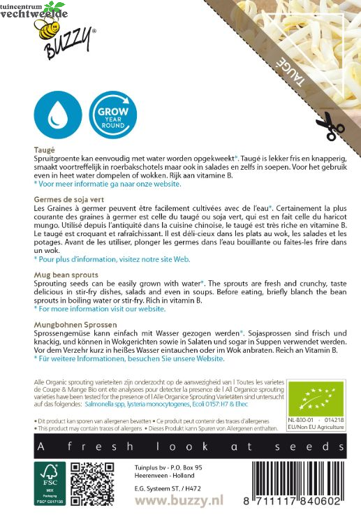 Wij zijn benieuwd naar uw mening! Schrijf een recensie over het artikel "Bio knip&eet tauge 30g" en maak kans op een Nationale Tuinbon ter waarde van € 25,- !