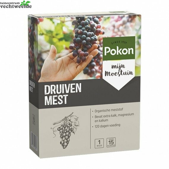 Deze organische Pokon Druiven Voeding, verrijkt met in de natuur voorkomende mineralen, voedt de plant en verbetert de grond. Dit zorgt voor gezonde planten, gezonde planten hebben meer weerstand tegen ziektes en plagen en geven heerlijk fruit. Druiven houden van een kalkrijke grond. Deze voeding is uniek doordat er kalk in de korrels is verwerkt. Daarnaast hebben druiven behoefte aan veel kali. Kali zorgt voor stevige planten en een goede weerstand tegen ziektes, schimmels en vorst, ook dit is aan deze meststof toegevoegd. Geniet van smaakvolle druiven uit eigen tuin met deze organische meststof.