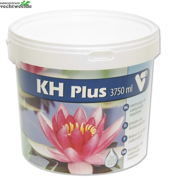 Biologische processen in de vijver verlagen de hardheid voortdurend. KH Plus verhoogt snel en probleemloos de carbonaathardheid van het vijverwater. Een KH-waarde van 6 tot 8 °DH gaat verzuring tegen en is ideaal voor de groei van zuurstofplanten.