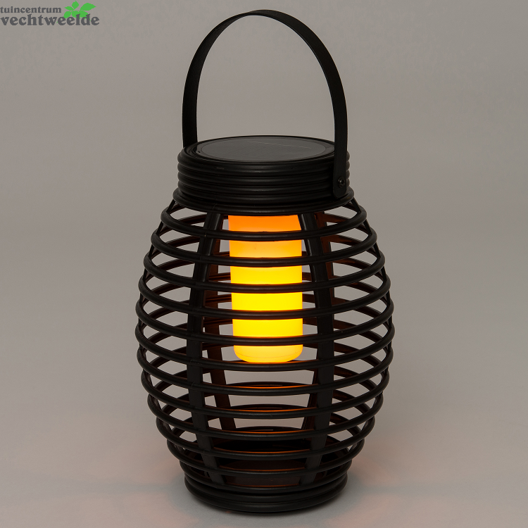 Solar lantaarn zwart d15h19cm vlam