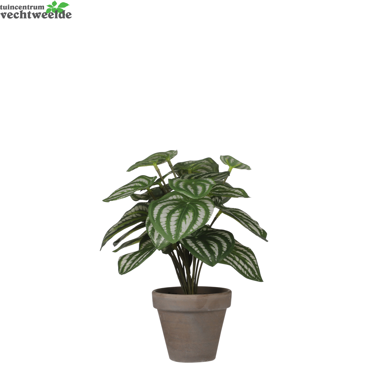 Klaar om zorgeloos te genieten? De kunstplanten van Mica Decorations zijn niet van echt te onderscheiden, maar hebben geen enkel onderhoud nodig. De lichtgroene, hartvormige bladeren van deze Peperomia blijven dan ook het hele jaar mooi. De bijzondere, bonte tekening is tot in detail nagemaakt en doordat het blad is uitgevoerd in verschillende maten, lijkt het net alsof hij nog in de groei is. Net echt! De plant is al gemodelleerd en stevig verankerd in een terracotta pot met basalt grijze pigmenten. Na aankoop kan hij dus direct worden neergezet, of plaats hem in een sierlijke overpot. Combineer hem met andere kunstplanten en -bloemen uit de collectie en breng meer groen in huis. De afmetingen van deze Peperomia zijn H24 x Dia 23 cm.