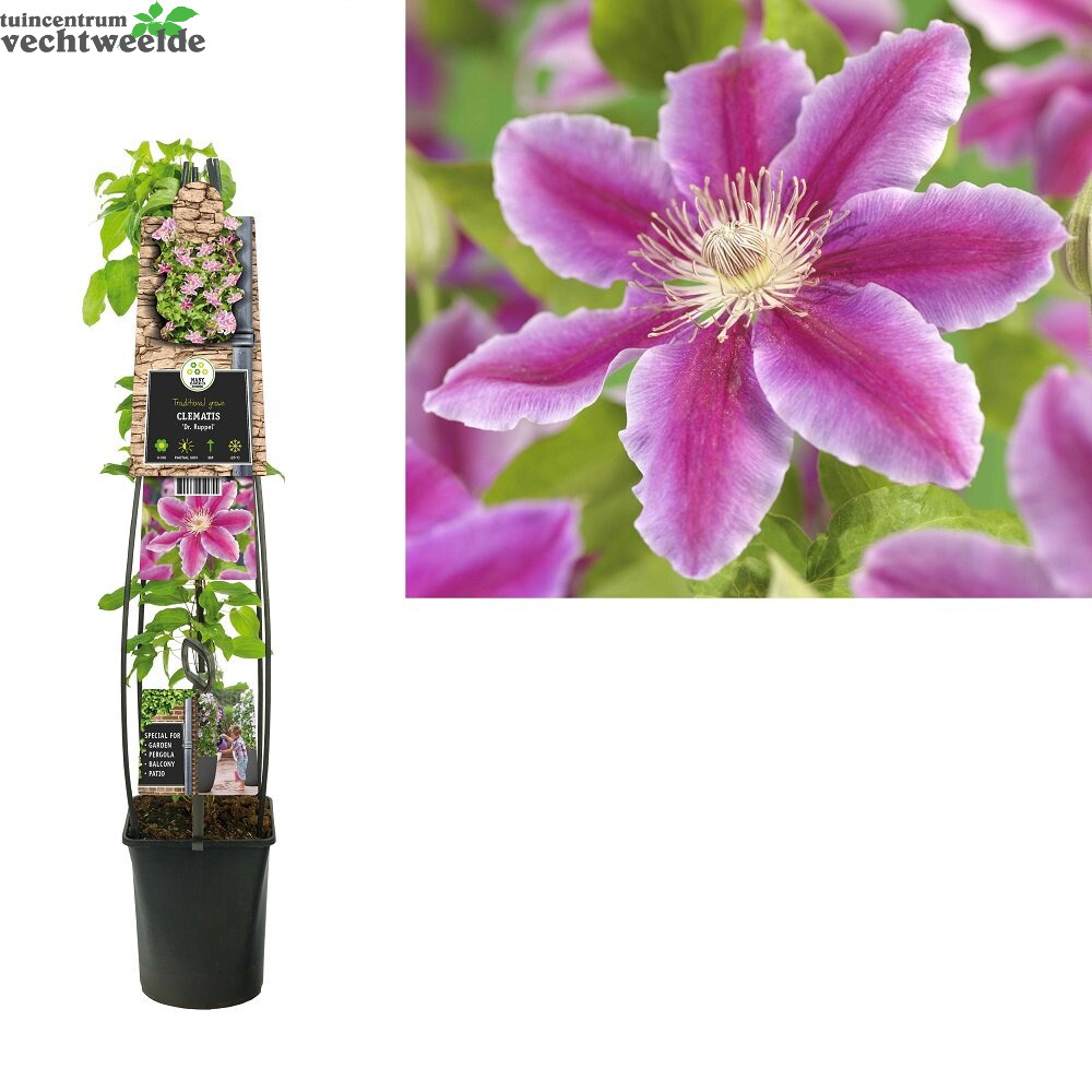 Wilt u Clematis 'Dr Ruppel' kopen? Kom langs in ons sfeervolle tuincentrum en laat u inspireren. We helpen u graag en geven vakkundig advies om uw huis & tuin mooi te maken!
