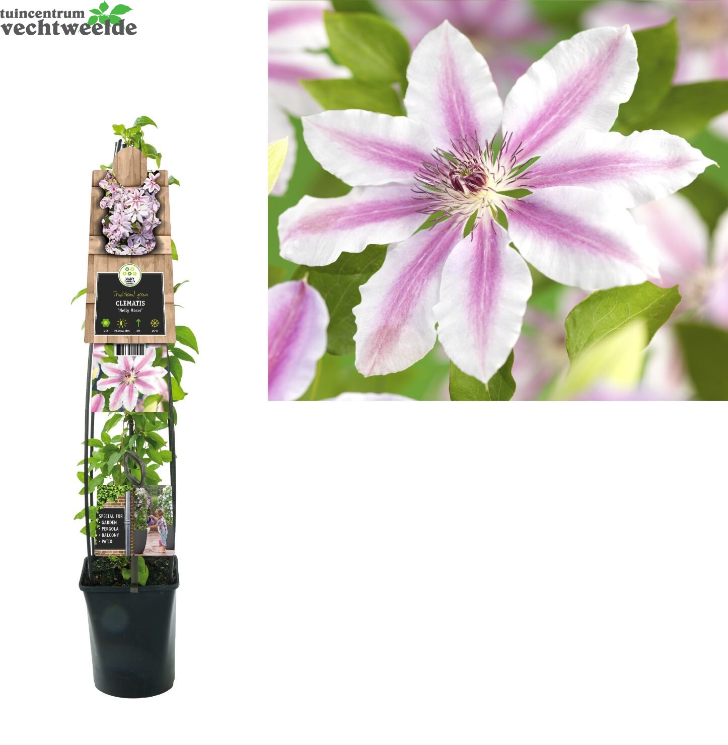 Wilt u Clematis 'Nelly Moser' kopen? Kom langs in ons sfeervolle tuincentrum en laat u inspireren. We helpen u graag en geven vakkundig advies om uw huis & tuin mooi te maken!