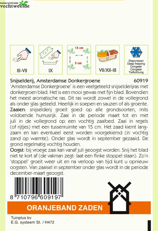 Snijselderij Amsterdamse donkergroene is een veelgeteeld snijselderijras met donkergroen blad. Het is een mooi gewas met fijn blad. Bovendien het meest aromatische ras. Dit ras wordt zowel in de vollegrond als onder glas geteeld. Heerlijk in soepen en sauzen of als groente.