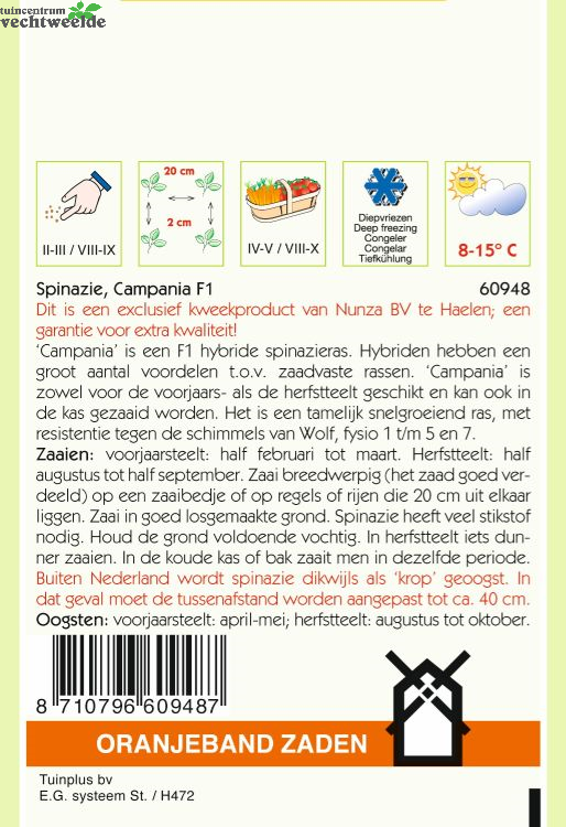 Wilt u Spinazie campania 15g kopen? Kom langs in ons sfeervolle tuincentrum en laat u inspireren. We helpen u graag en geven vakkundig advies om uw huis & tuin mooi te maken!