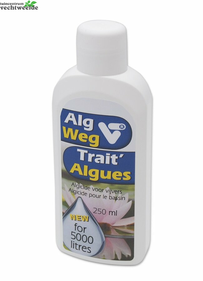 Algweg Liquid is een zeer werkzaam product om zweefalgen uit de vijver te verwijderen. Het werkt doeltreffend tegen deze vieze algenvorming. In zacht water (GH minder dan 8 °DH) en met een lagere pH waarde dan 8, wordt aanbevolen om een halve dosering te gebruiken. Bedenk echter dat algen enorme zuurstofproducenten zijn. Het plotseling verdwijnen ervan kan tot zuurstoftekort leiden. Om algengroei op langere termijn te voorkomen dient ten minste 40 à 50% van het wateroppervlak met planten begroeid te zijn.