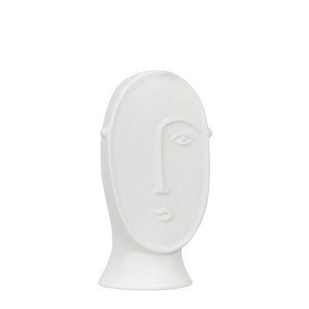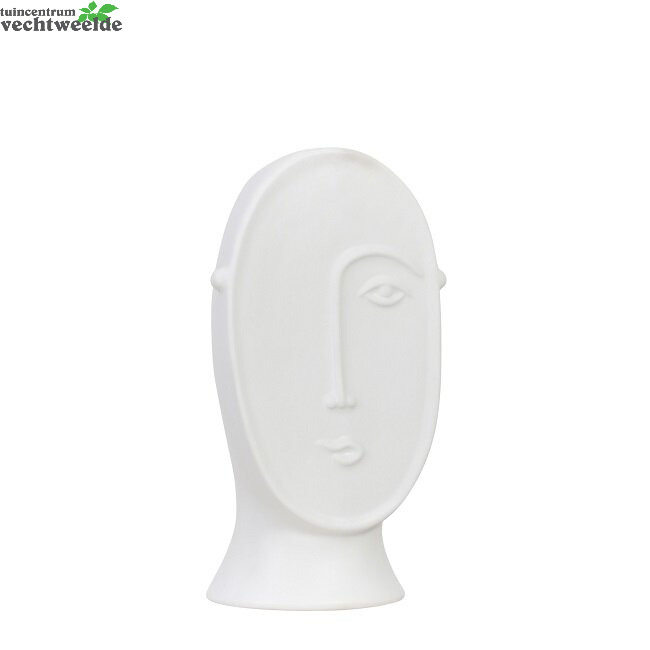 Met de Face vaas uit de collectie van Mica Decorations haal je echt een uniek item in huis! De vaas is gemaakt van keramiek en heeft een bijzonder design waarin een gezicht zit verwerkt. Bovenop zitten drie openingen voor een paar kleine bosjes bloemen. Zo worden ze mooi verspreid! De vaas heeft een neutrale, witte kleur, waardoor hij in elk interieur goed tot zijn recht komt. De afmetingen zijn L11,5 x B8 x H20 cm. Waar zet jij hem neer?